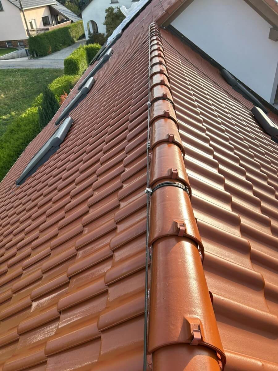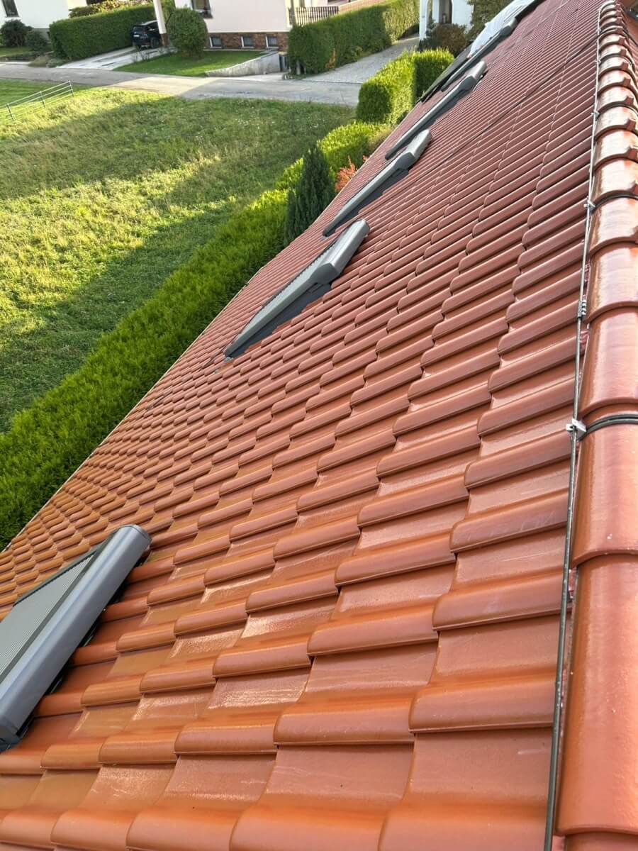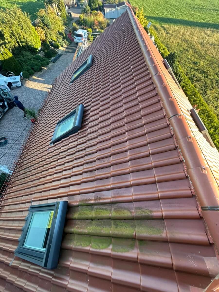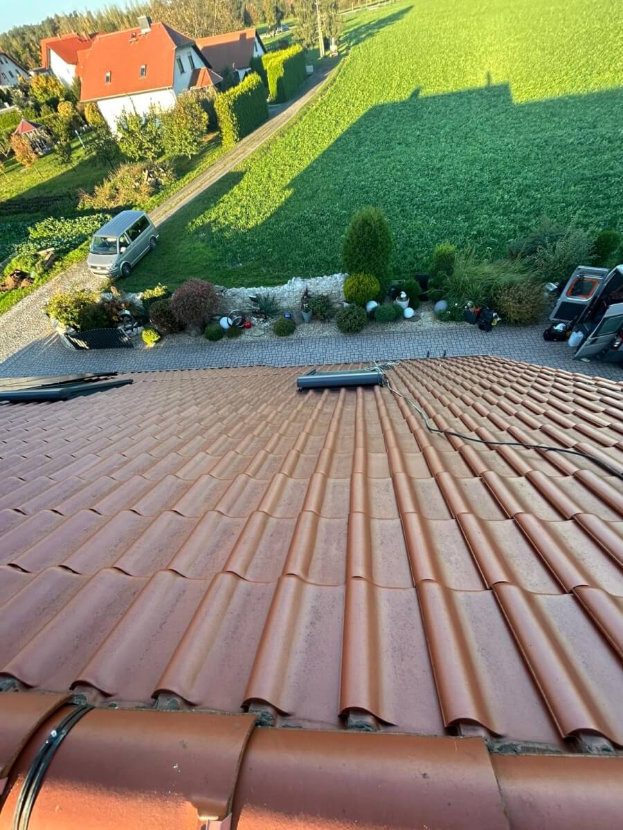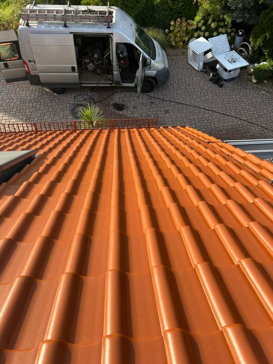 Efekt? Dach znów ma równy, ciepły kolor, a cały budynek prezentuje się jak po lekkim liftingu – czysto, nowocześnie i bardzo zadbanie.
