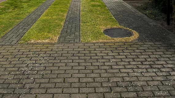 Czyszczenie i impregnacja kostki brukowej w NeißemündeCzyszczenie kostki brukowej Porównanie przed / po