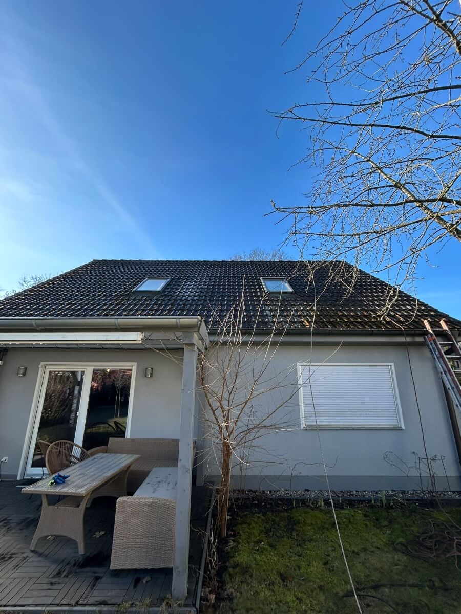 W Berlinie przy ulicy Landvogtstr. kolejny klient skorzystał z tegorocznej akcji 1500 euro i zdecydował się na mycie dachu połączone z bezbarwną impregnacją hydrofobową. Przed rozpoczęciem prac dach był mocno zanieczyszczony, miejscami porośnięty mchem i pokryty nalotem, przez co cała powierzchnia wyglądała ciężko i mało estetycznie.