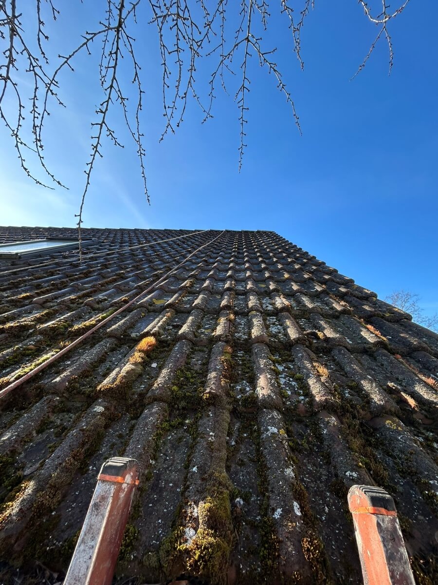 Podczas realizacji dokładnie oczyściliśmy pokrycie, usuwając zabrudzenia organiczne, osady i warstwę zanieczyszczeń, która przez lata odkładała się na dachówce. Następnie wykonaliśmy bezbarwną impregnację hydrofobową, dzięki której dach został zabezpieczony przed nadmiernym wchłanianiem wilgoci, a jednocześnie zachował swój pierwotny wygląd. To bardzo dobre rozwiązanie dla osób, którym zależy nie na zmianie koloru, lecz na odświeżeniu i ochronie istniejącego pokrycia.