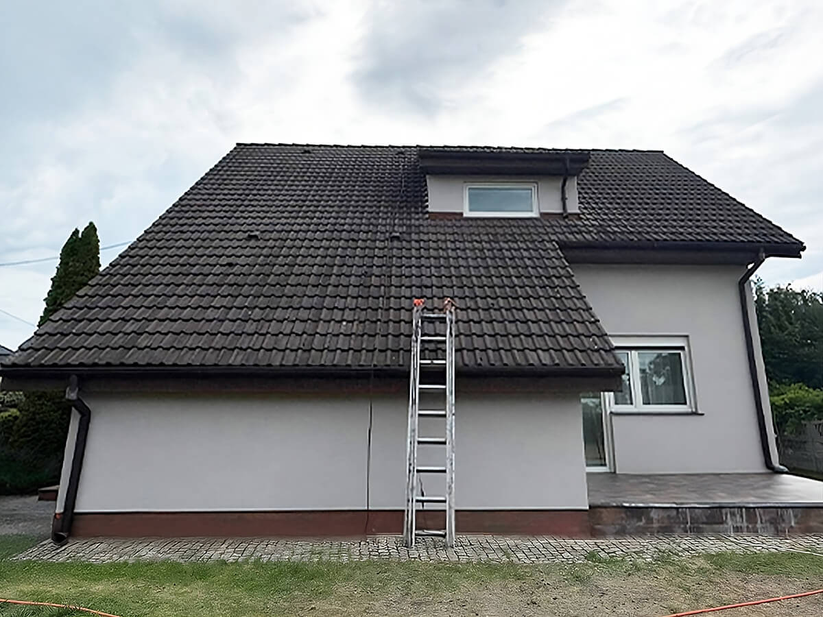 malowanie dachu w modrzycach przed i pomalowanie dachu w modrzycach przed i po