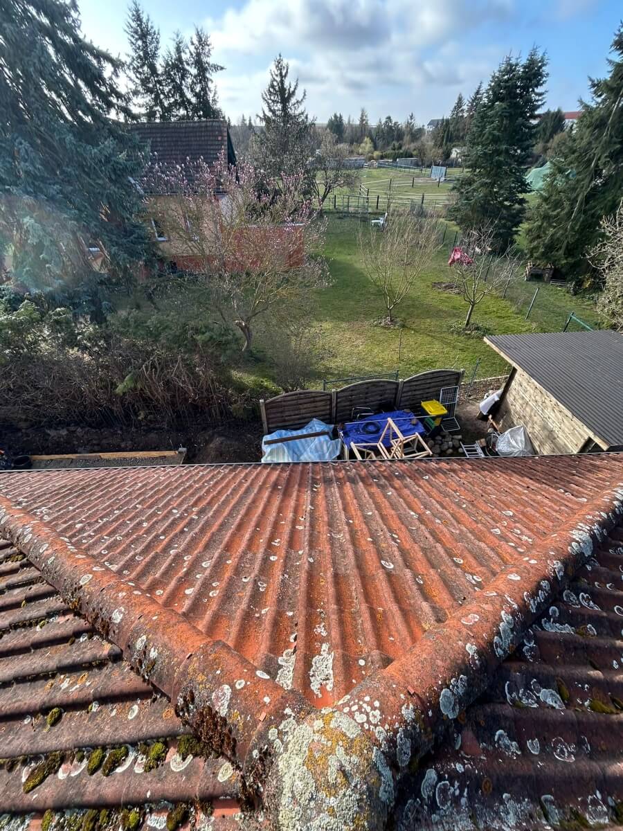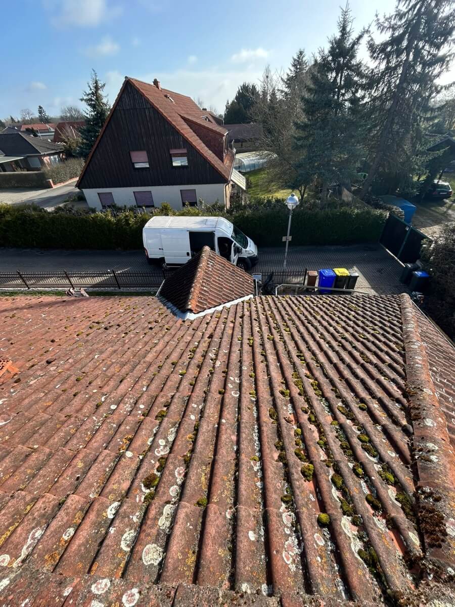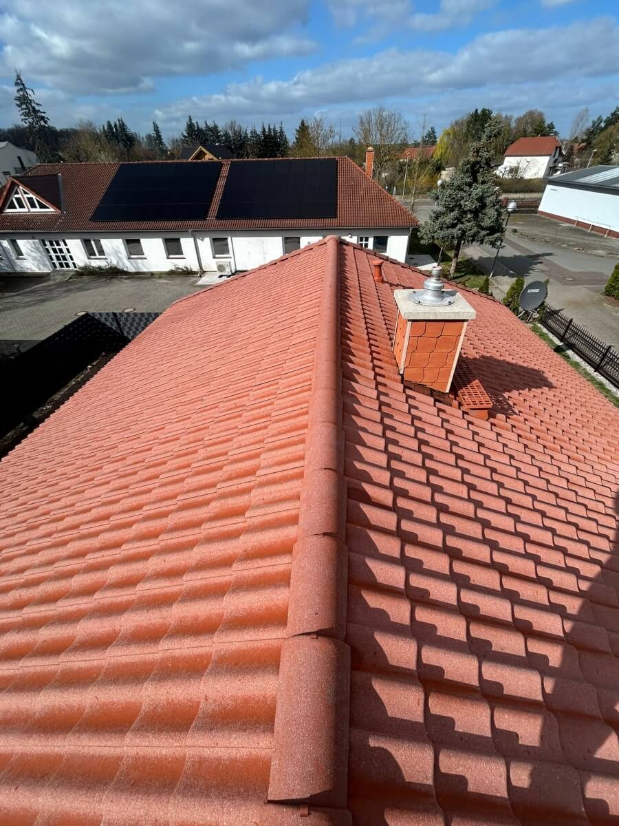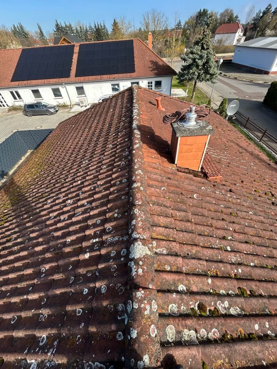 W miejscowości Parey kolejny właściciel domu zdecydował się skorzystać z naszej akcji 1500 euro, aby przy niewielkim budżecie przywrócić dachowi lepszy wygląd i zadbać o jego stan na kolejne lata. Przed wykonaniem prac pokrycie było wyraźnie zabrudzone, matowe i nierówne wizualnie. Na połaciach widoczne były naloty, porosty oraz ślady długoletniego oddziaływania wilgoci i zmiennych warunków atmosferycznych.